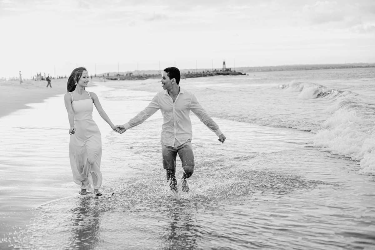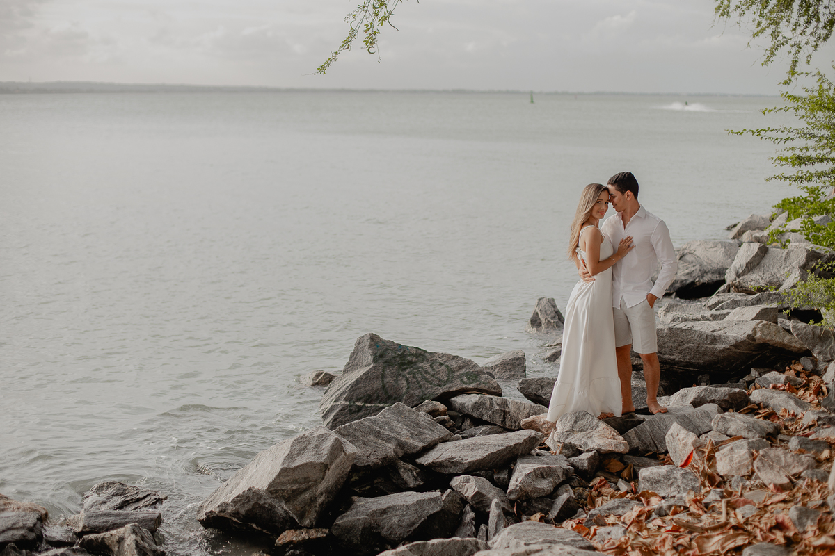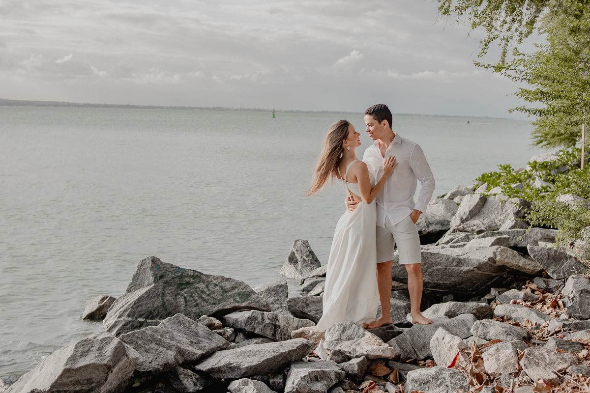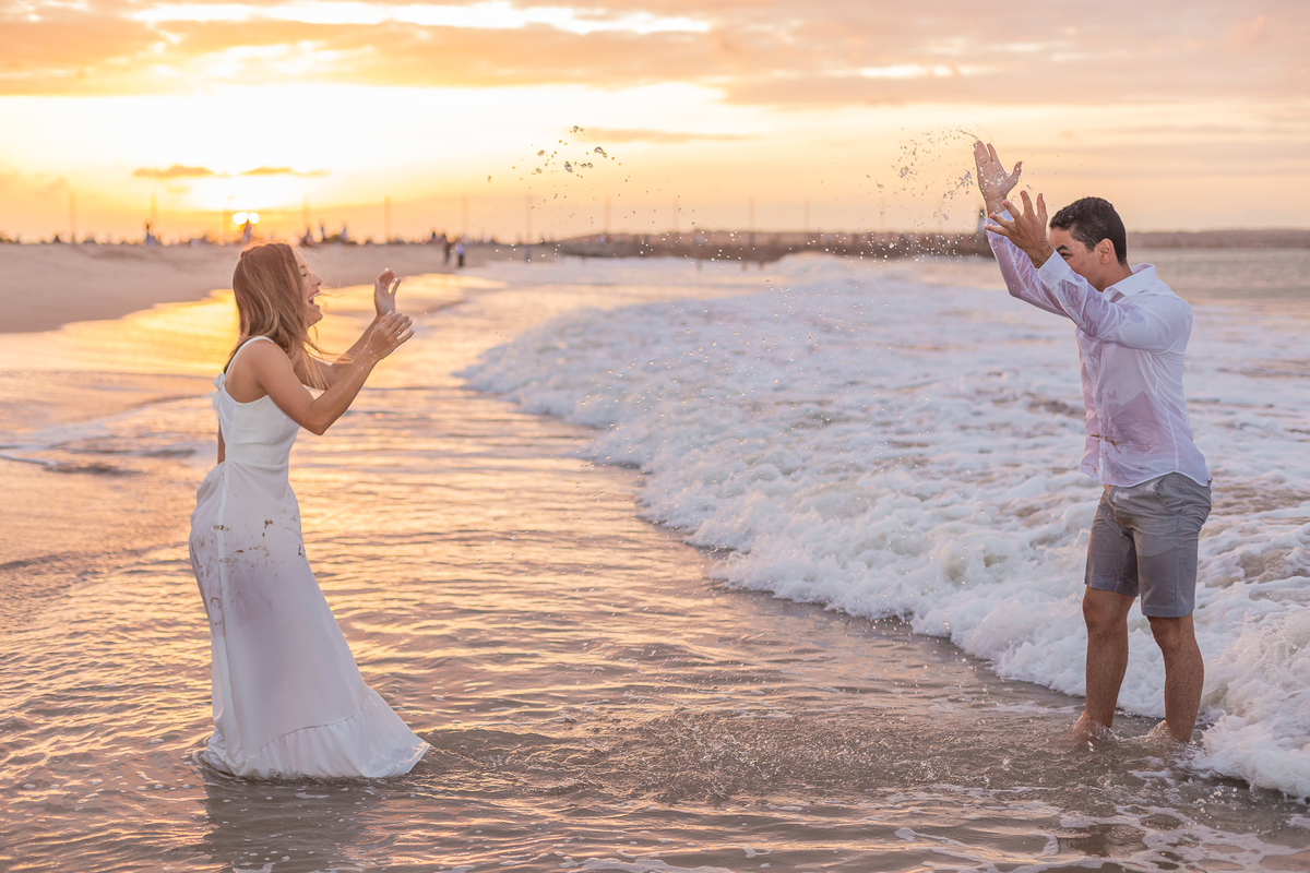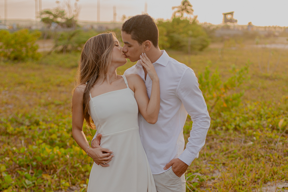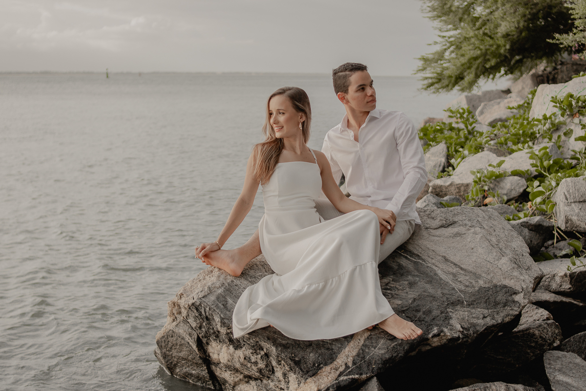 A brisa leve, o som do mar e a imensidão do horizonte criam o cenário perfeito para registrar todo o amor e a sintonia do casal.