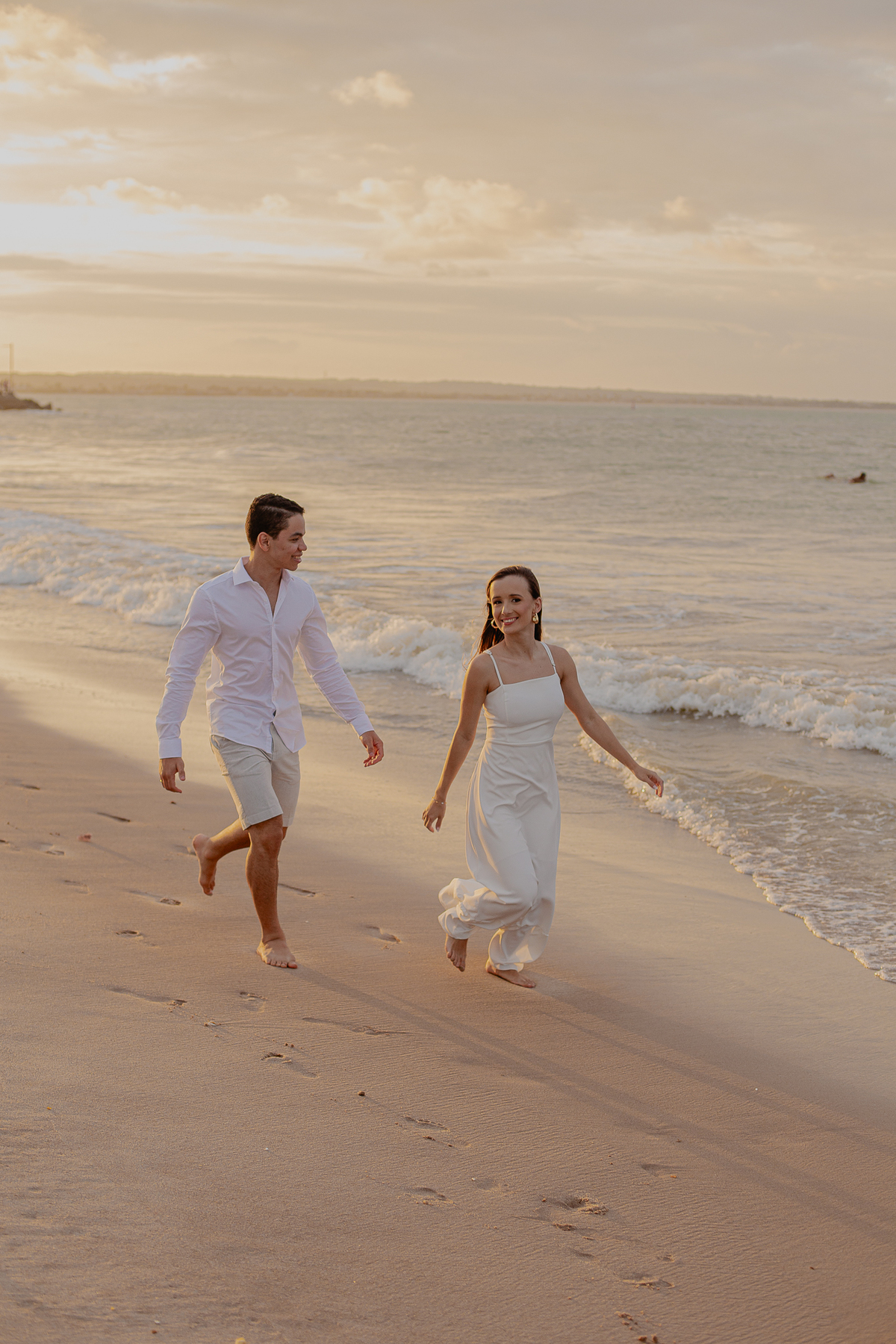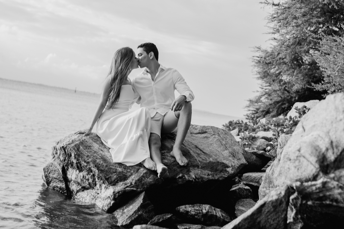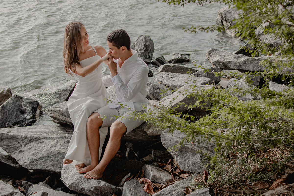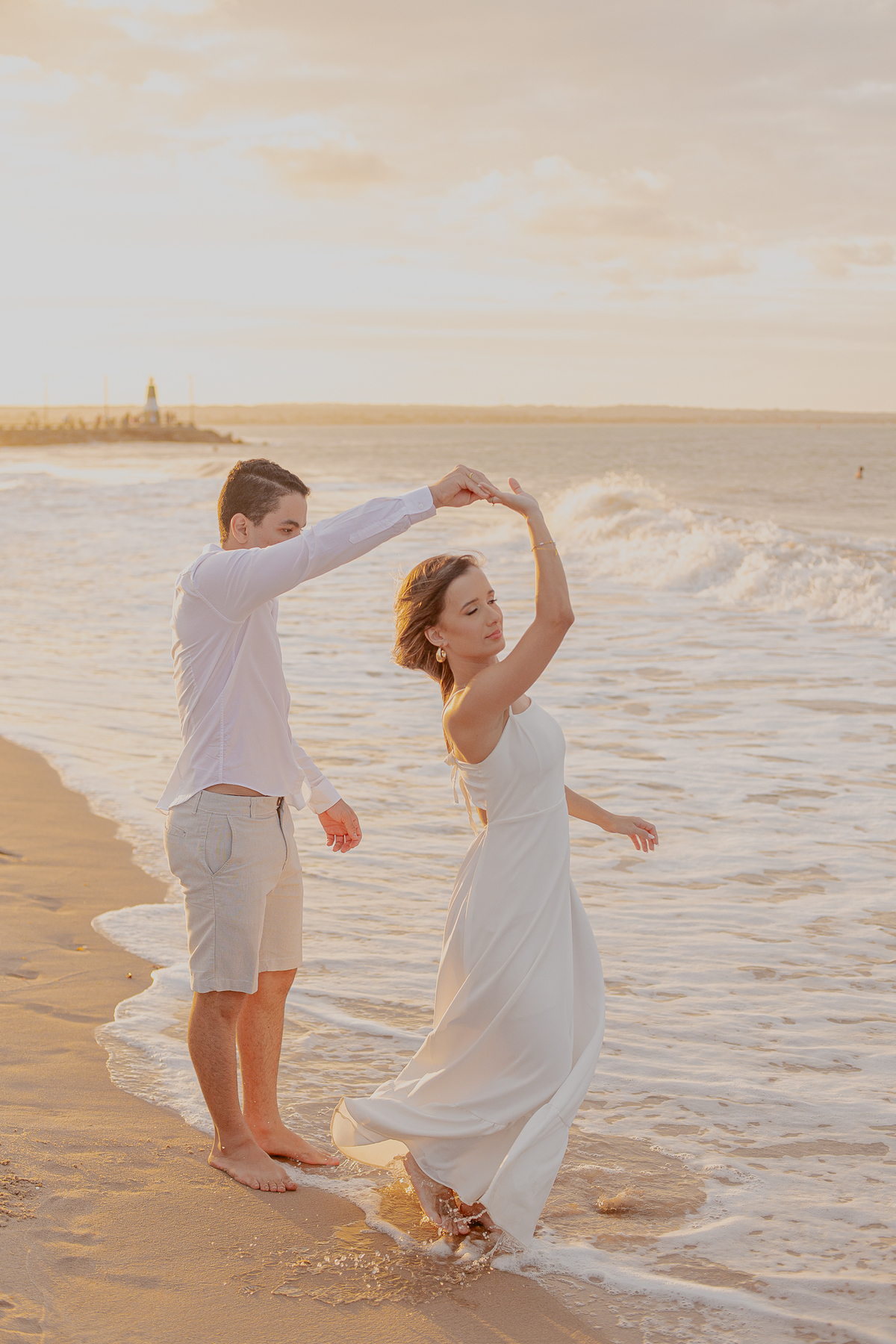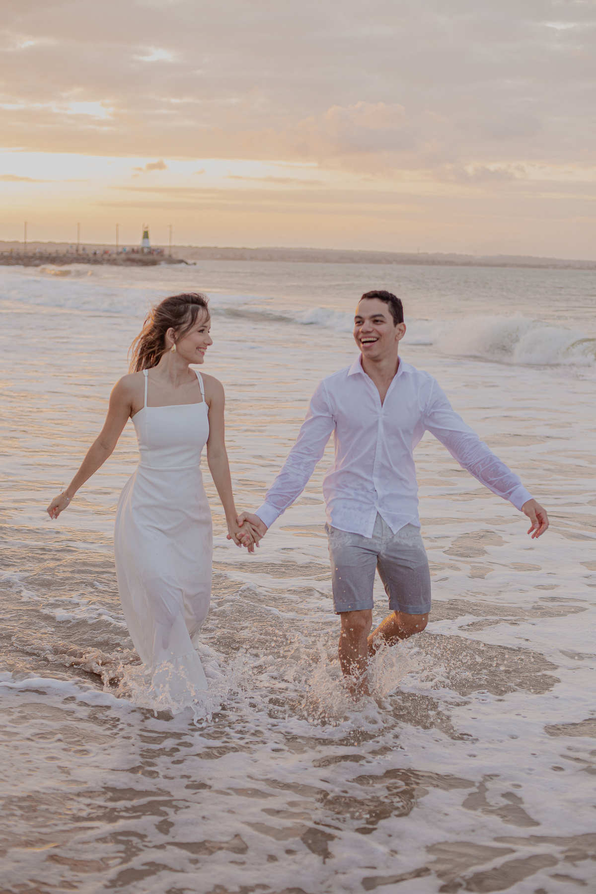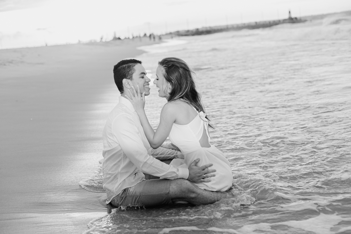 A brisa leve, o som do mar e a imensidão do horizonte criam o cenário perfeito para registrar todo o amor e a sintonia do casal.