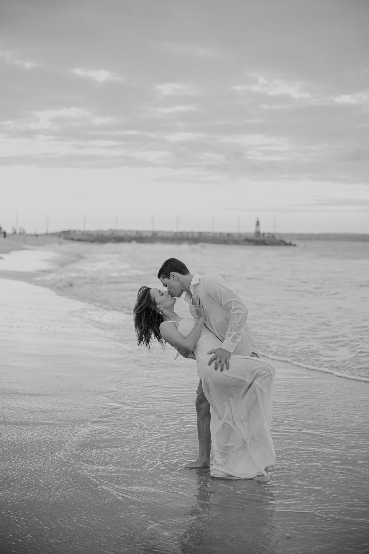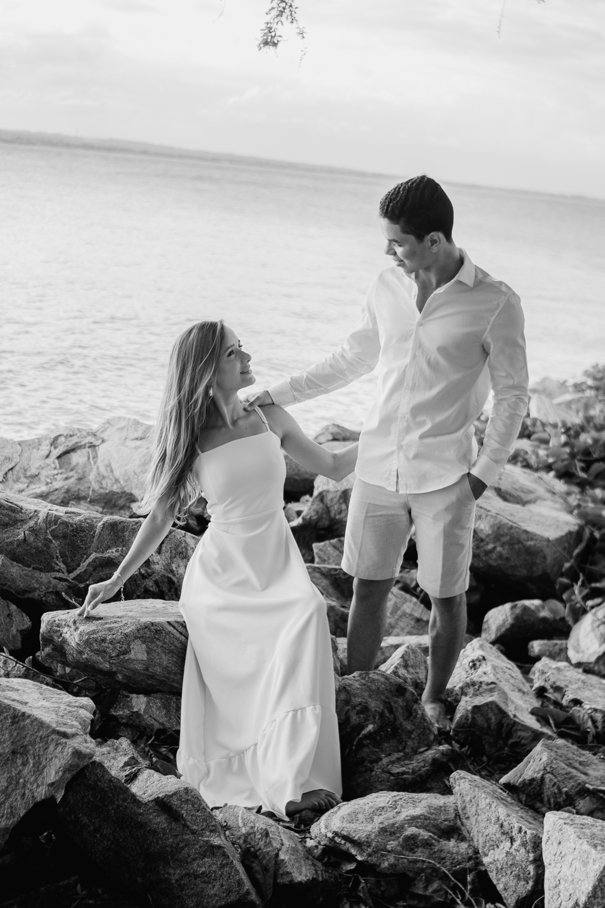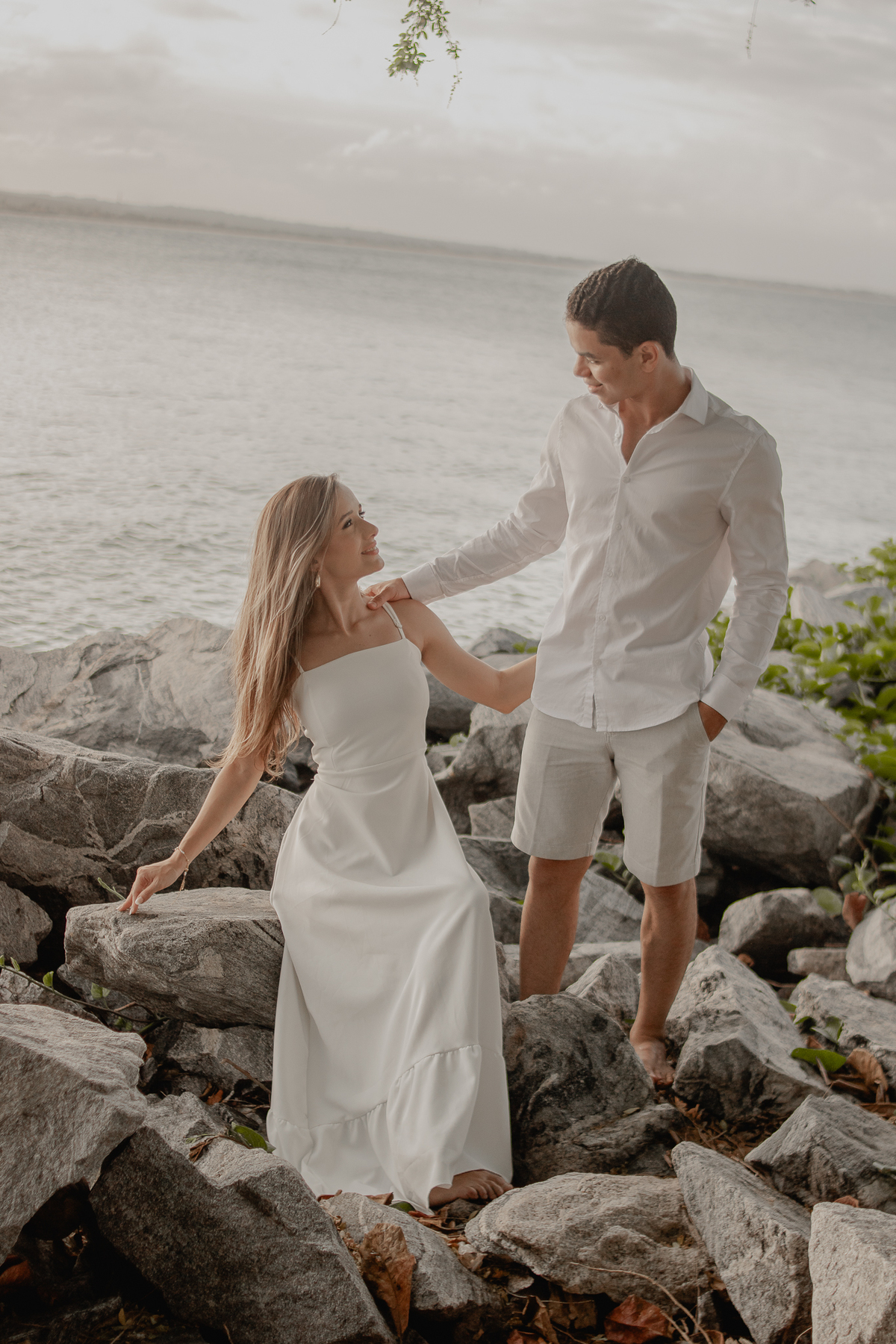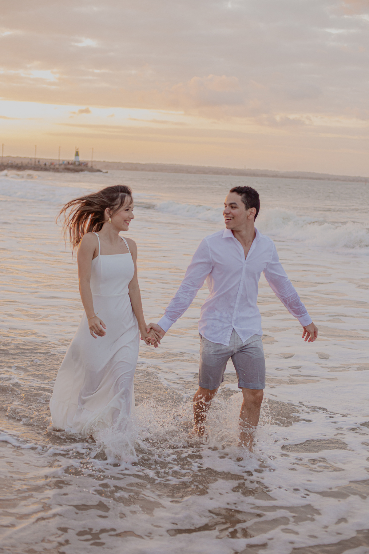 A brisa leve, o som do mar e a imensidão do horizonte criam o cenário perfeito para registrar todo o amor e a sintonia do casal.