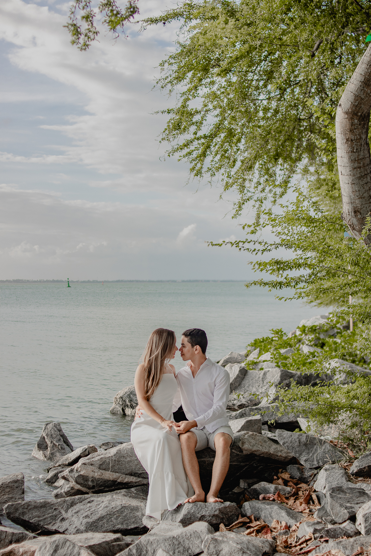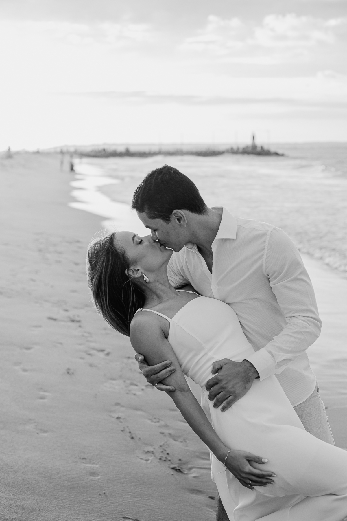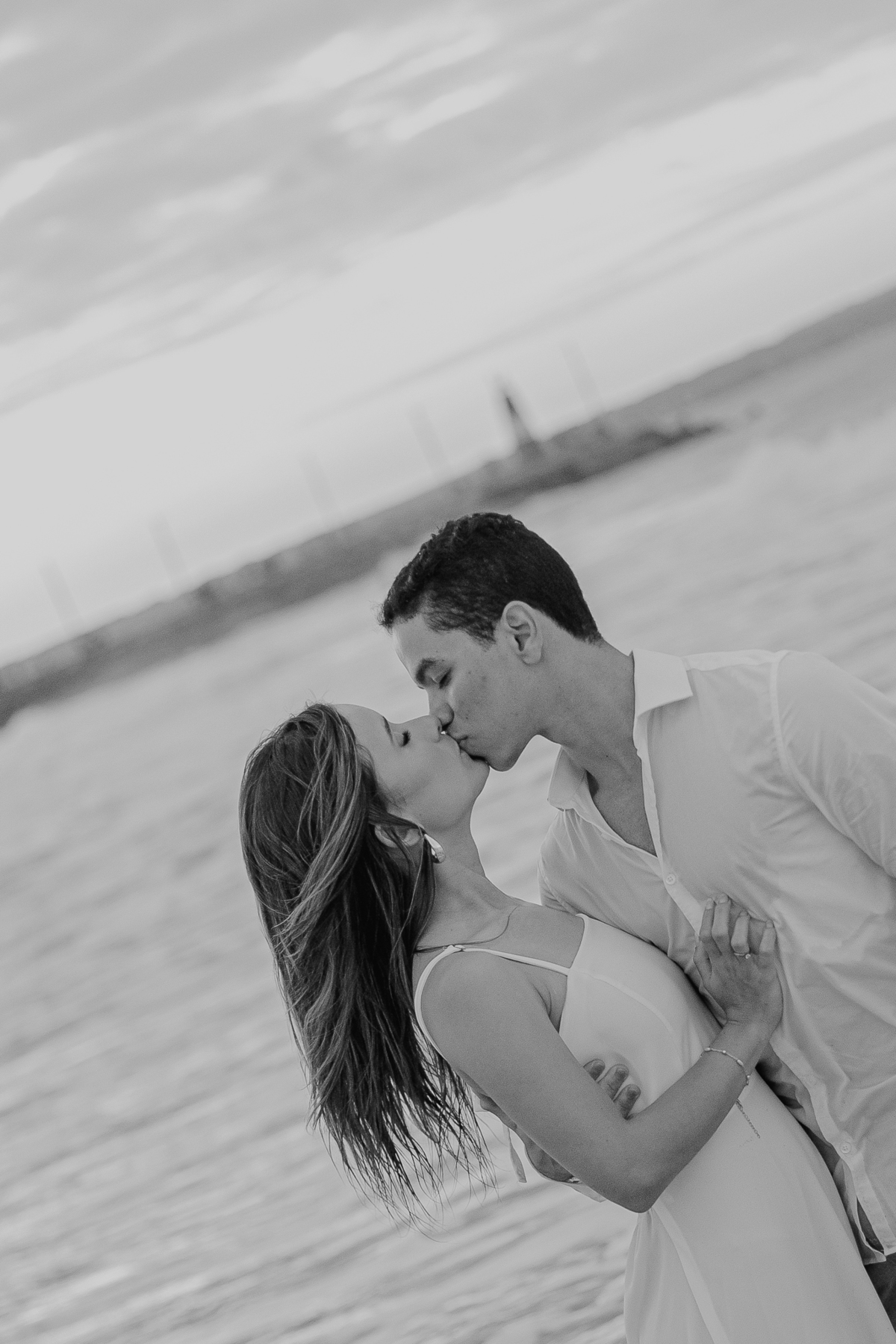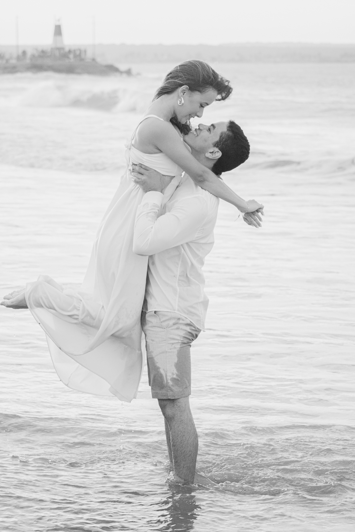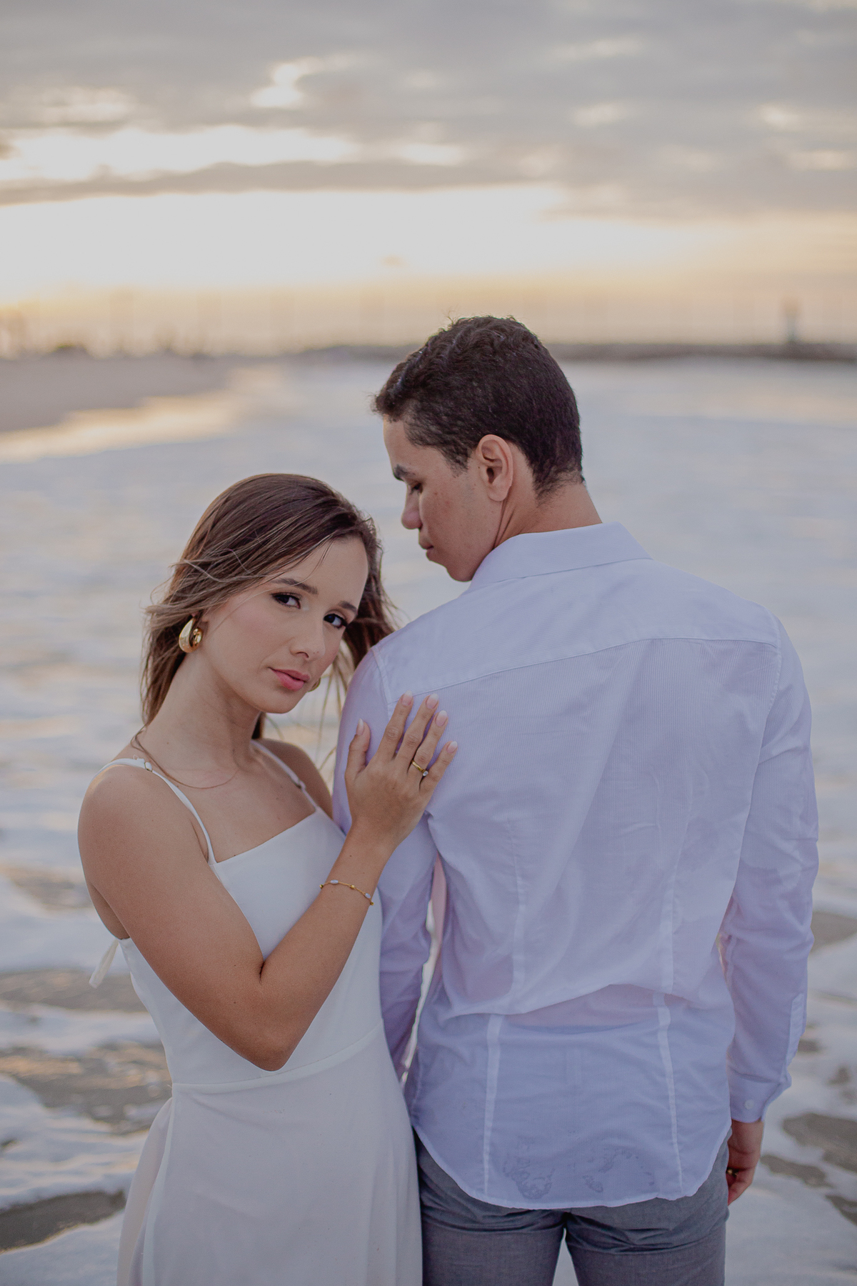 A brisa leve, o som do mar e a imensidão do horizonte criam o cenário perfeito para registrar todo o amor e a sintonia do casal.