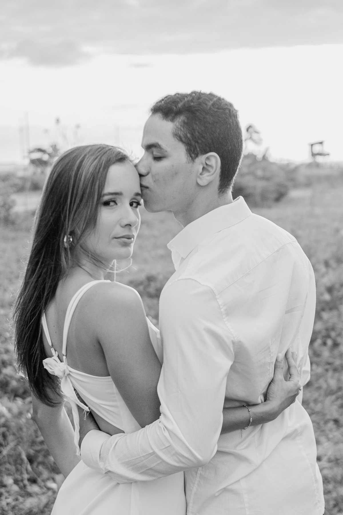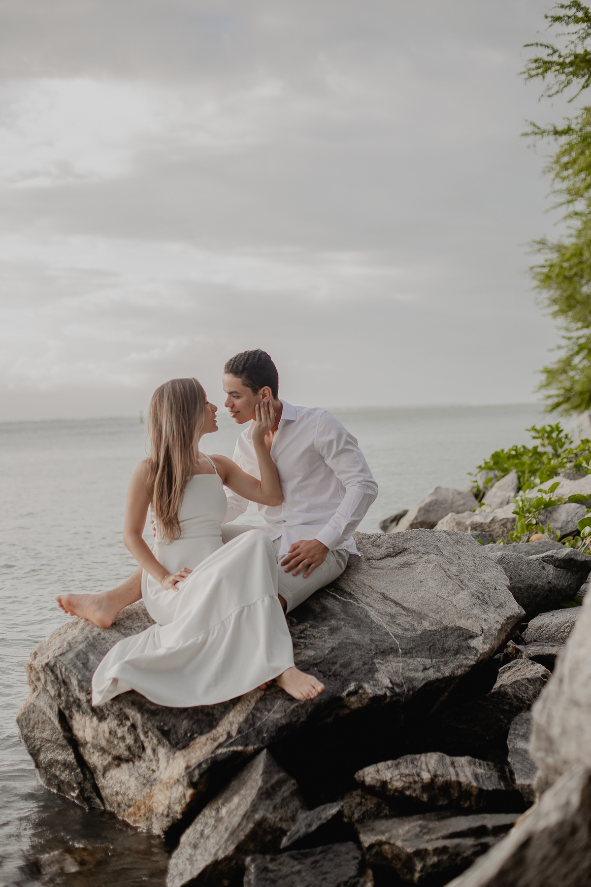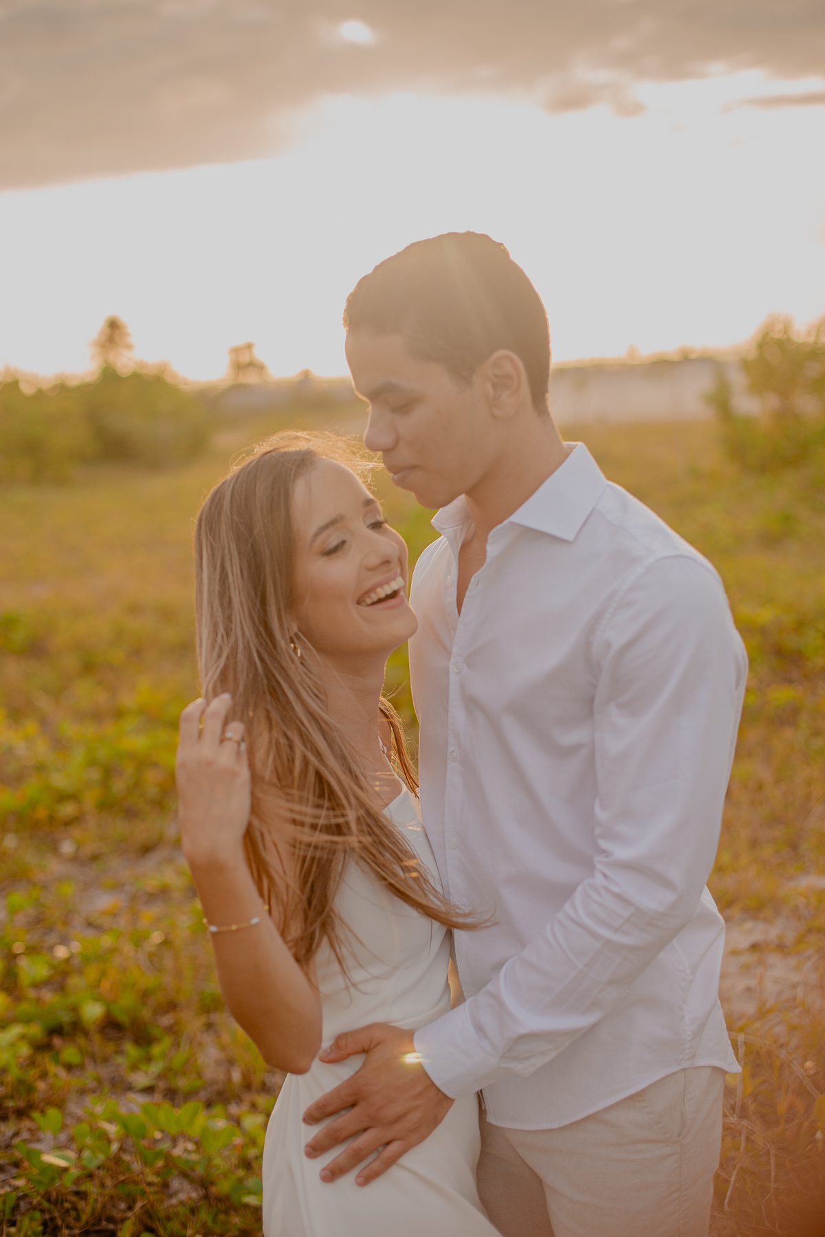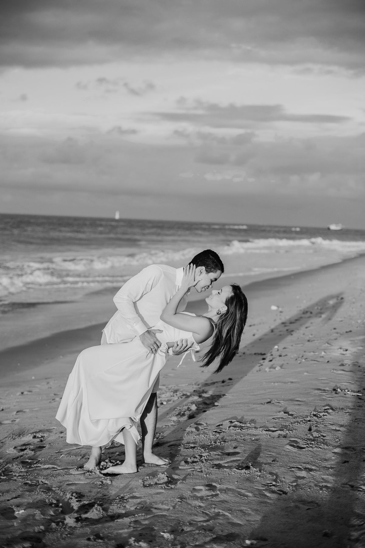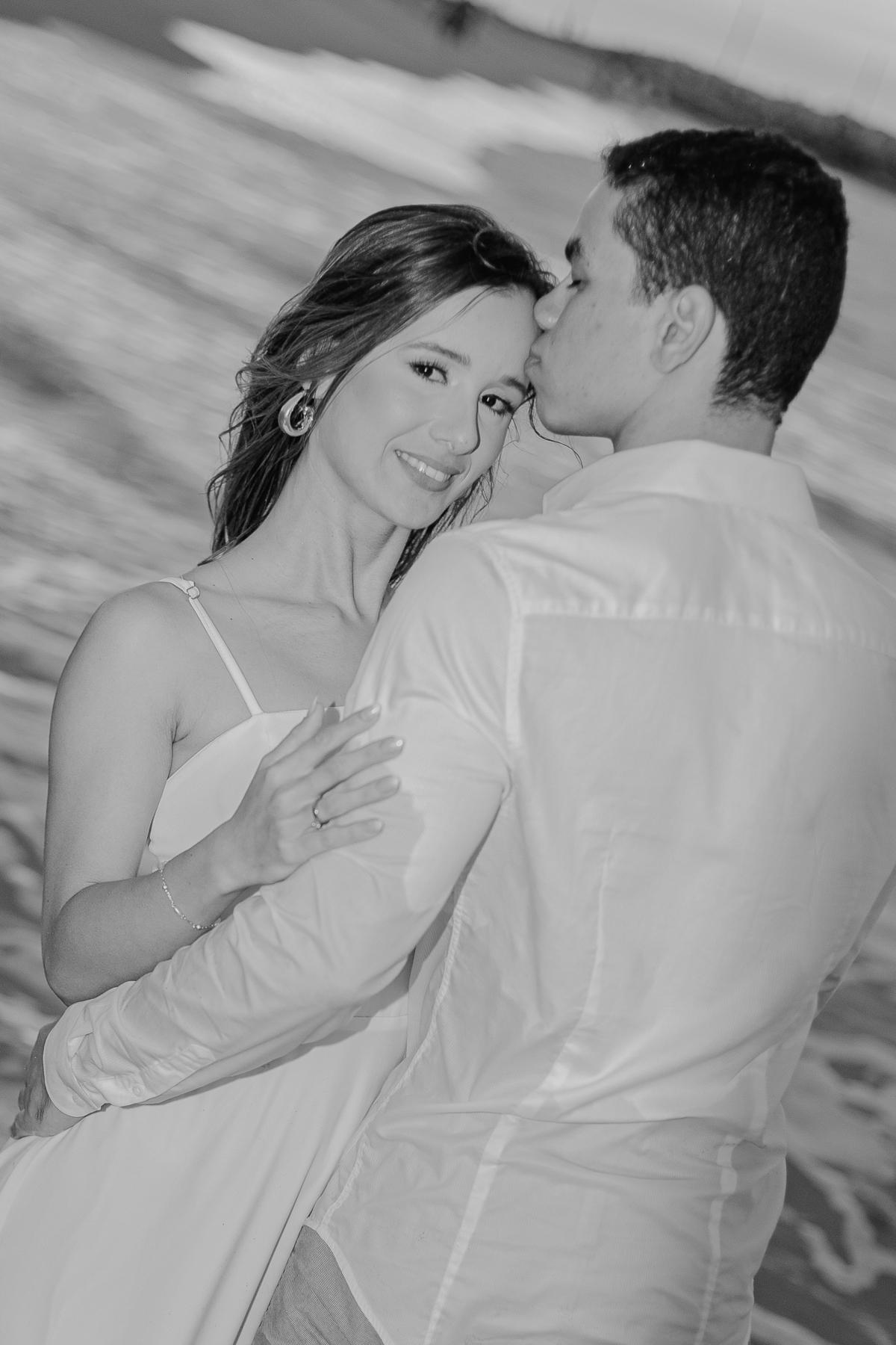 A brisa leve, o som do mar e a imensidão do horizonte criam o cenário perfeito para registrar todo o amor e a sintonia do casal.