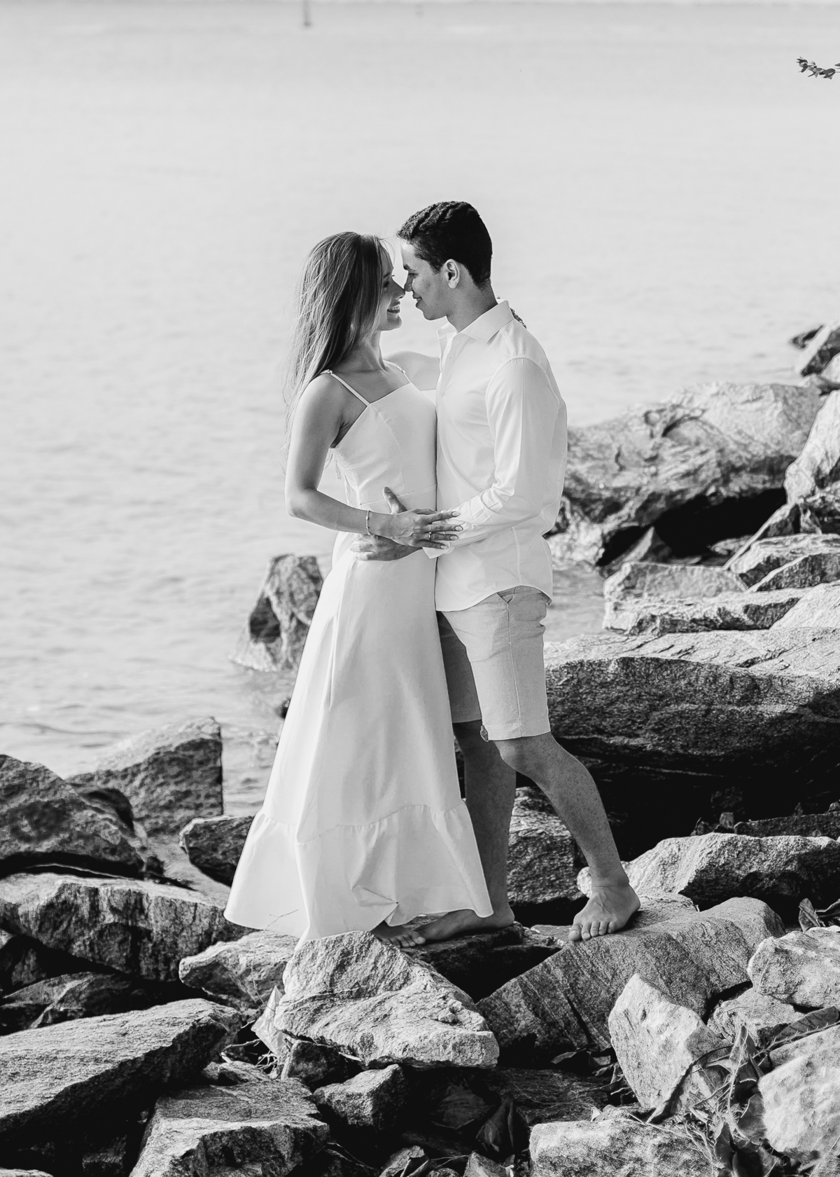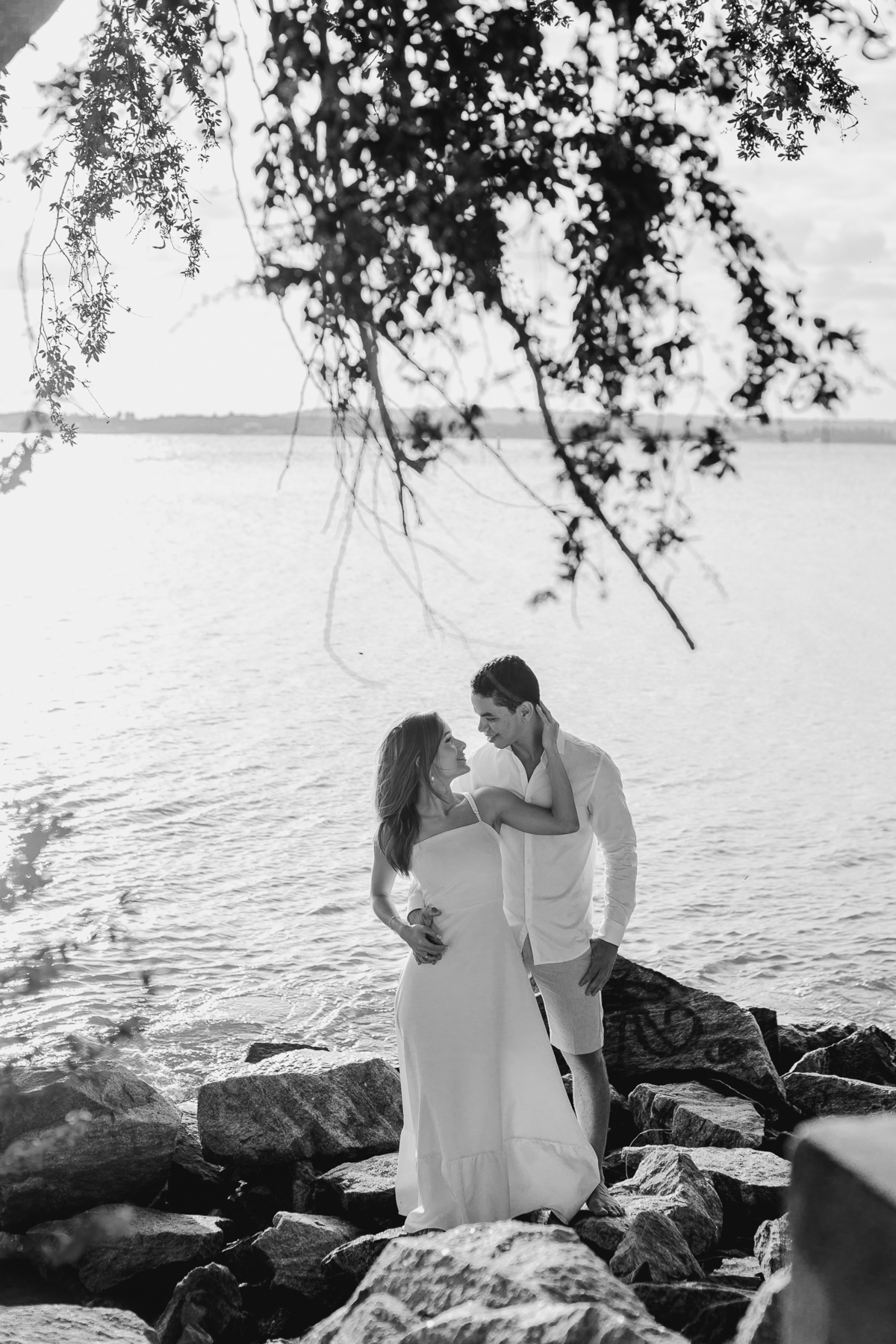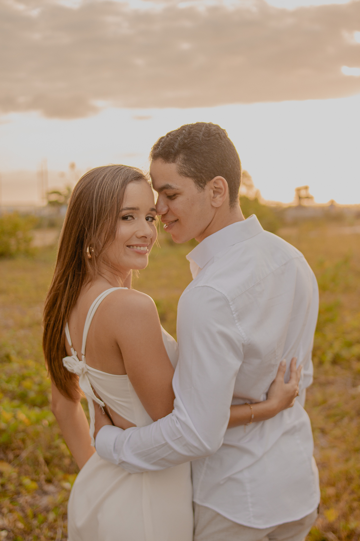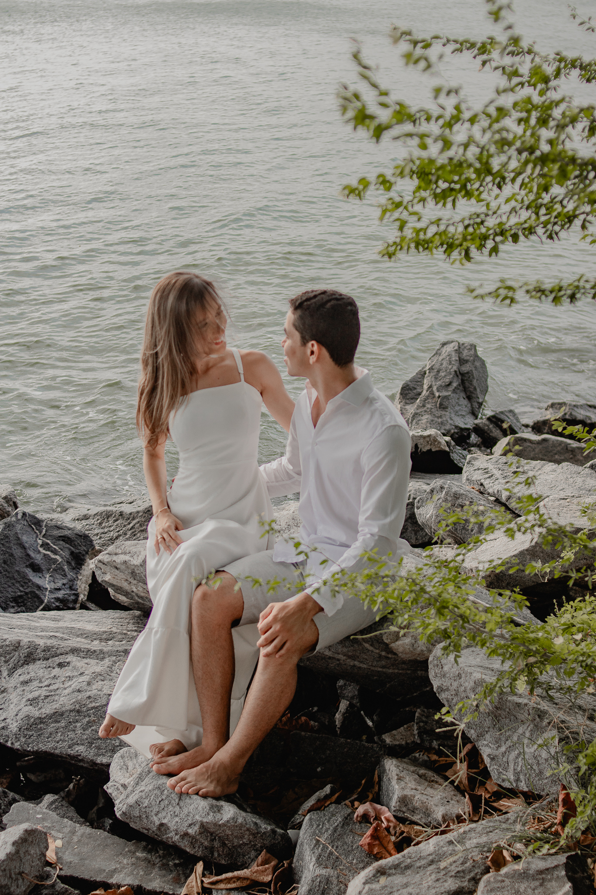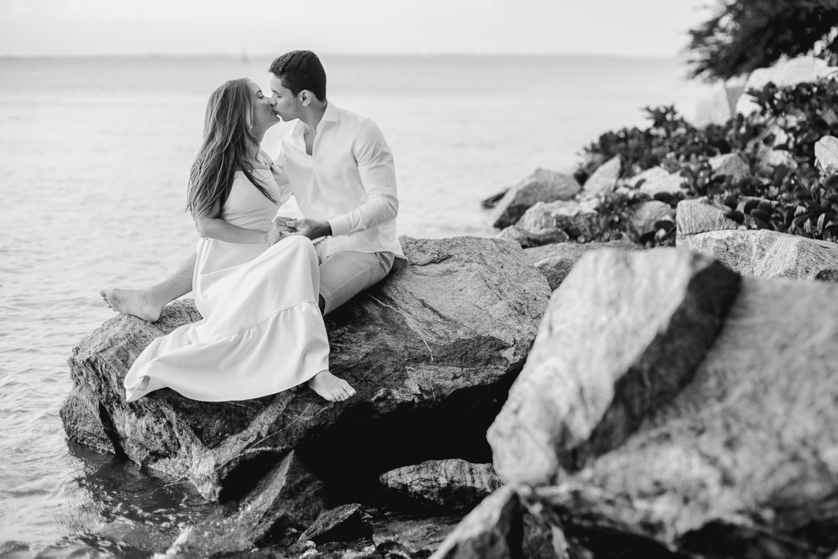 A luz natural do pôr do sol refletindo no mar deixa tudo ainda mais romântico, como se o universo inteiro conspirasse para eternizar esse momento.