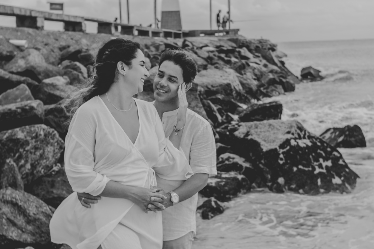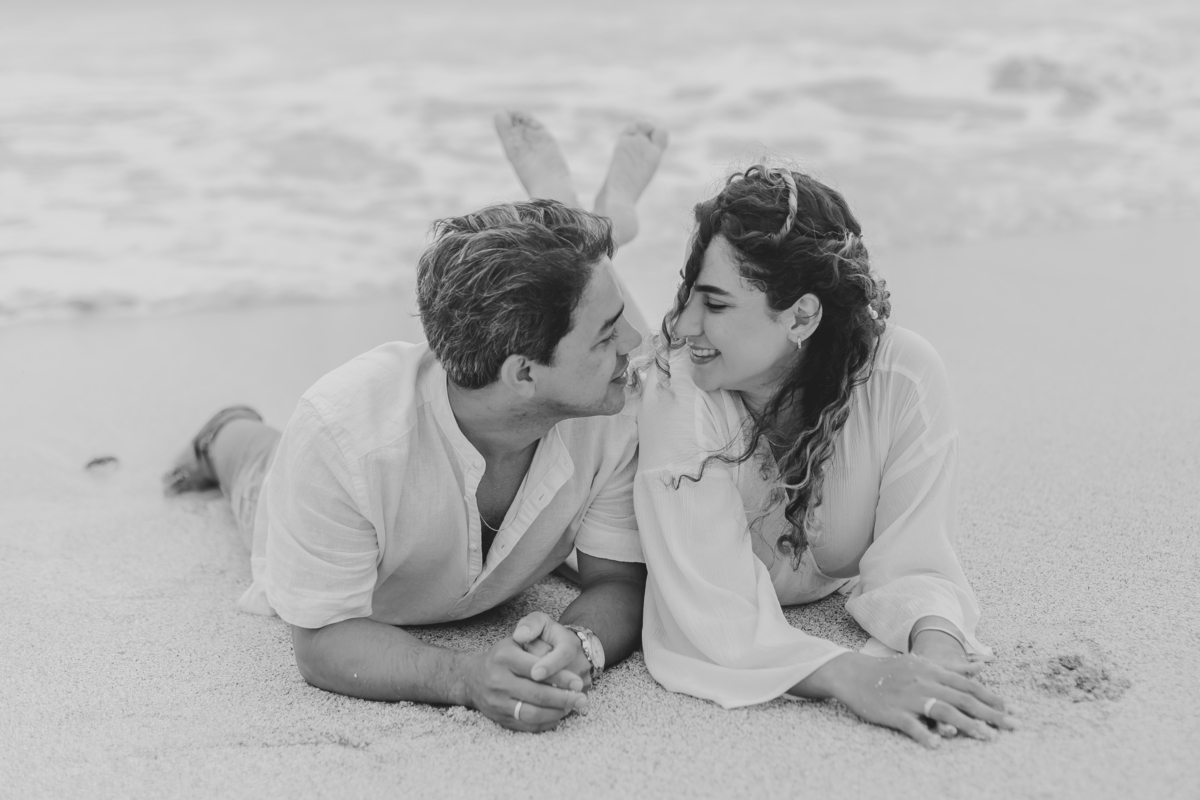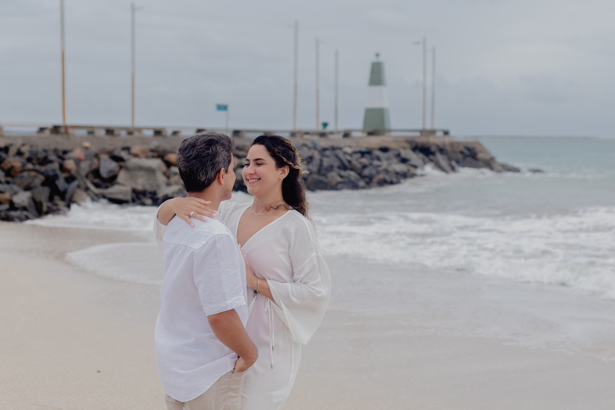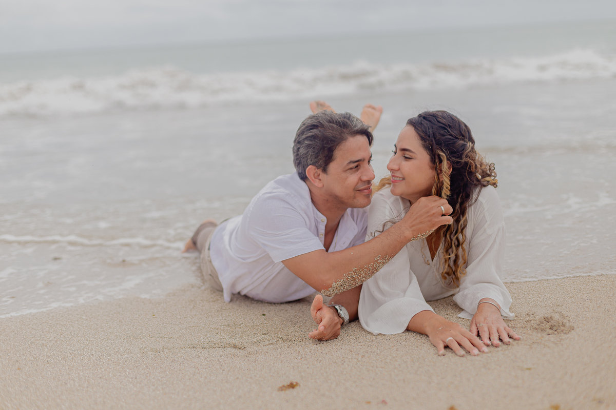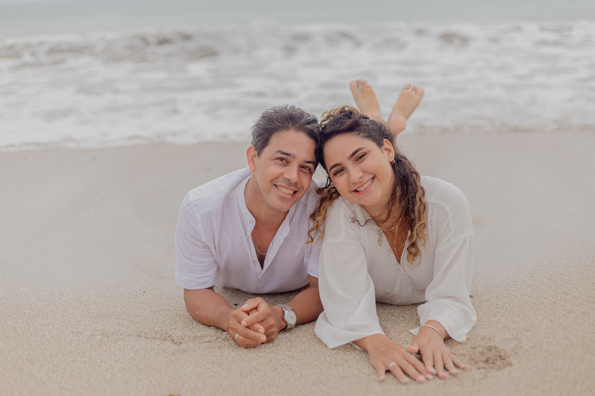 A praia traz uma energia única, deixando o ensaio leve, espontâneo e cheio de vida — com fotos que revelam toda a intensidade da história de vocês.