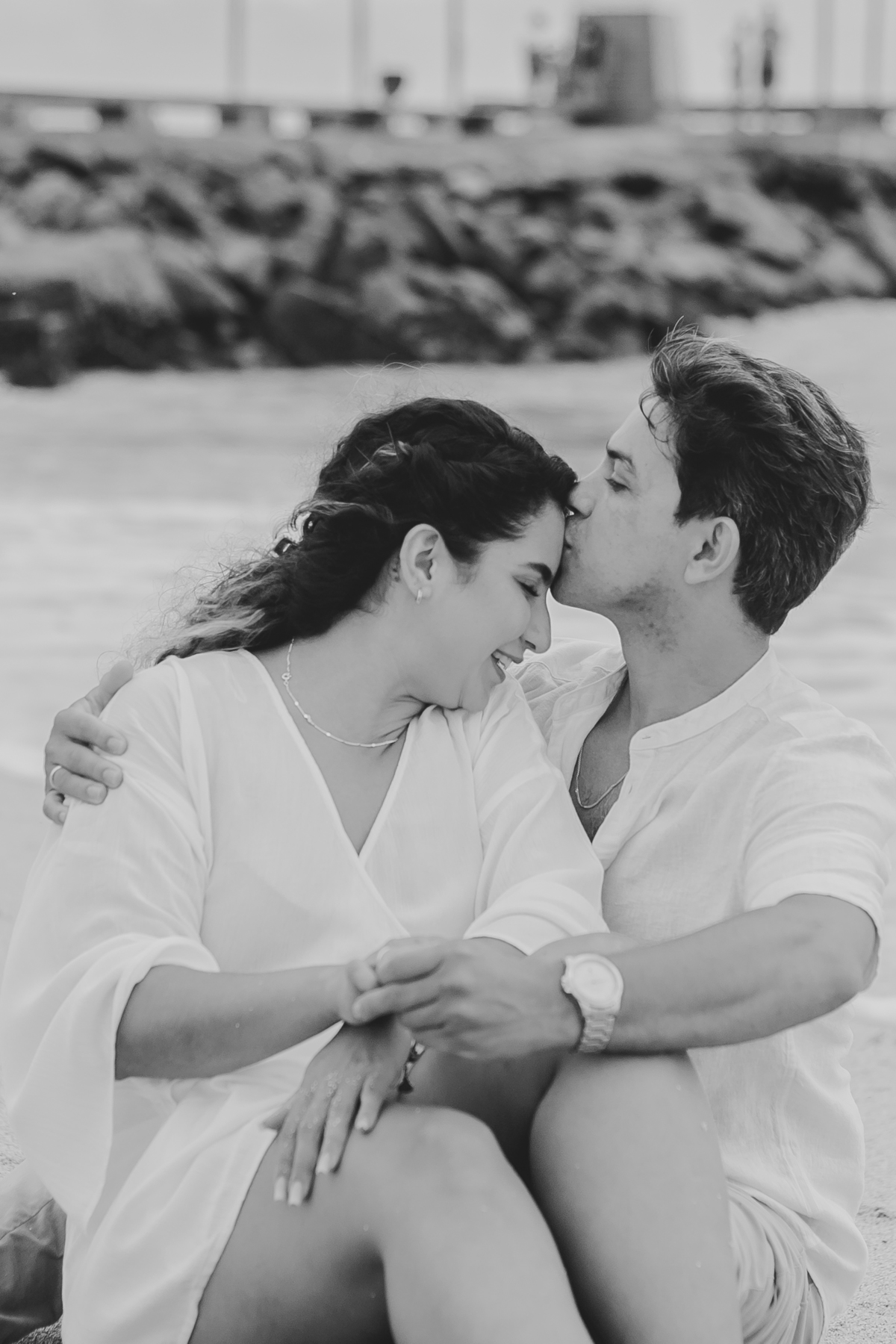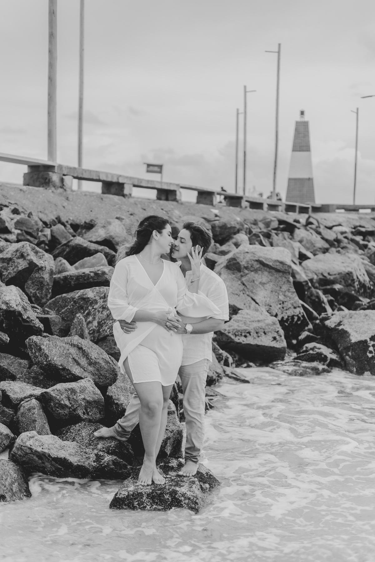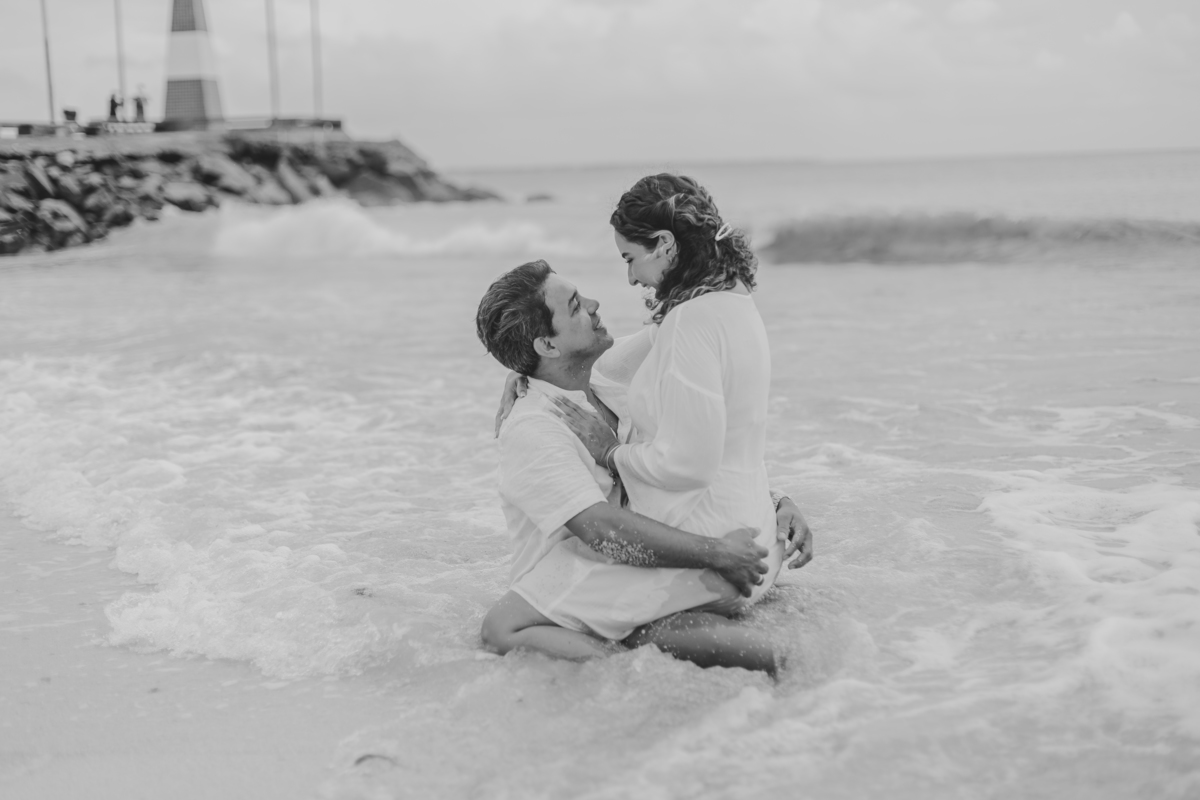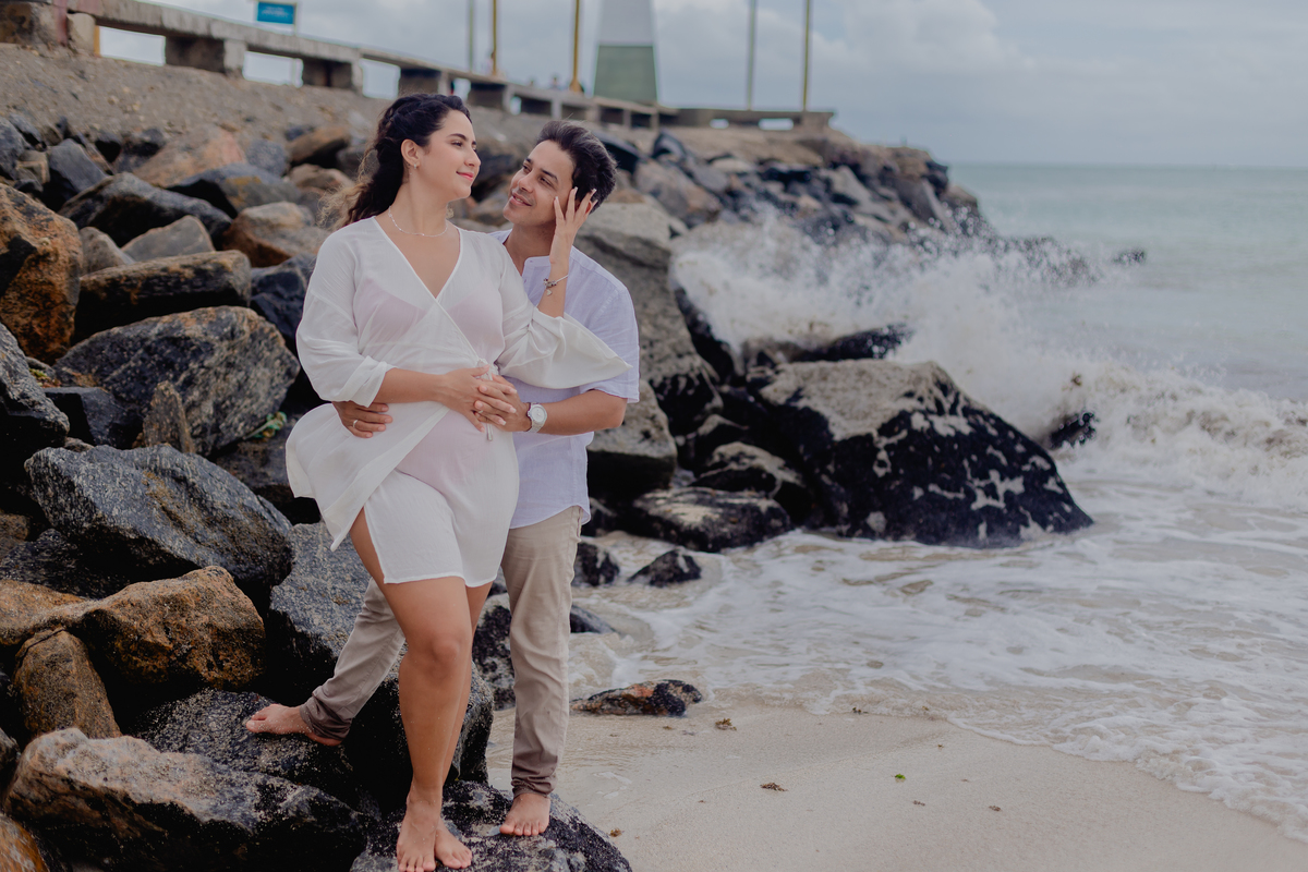 A praia traz uma energia única, deixando o ensaio leve, espontâneo e cheio de vida — com fotos que revelam toda a intensidade da história de vocês.