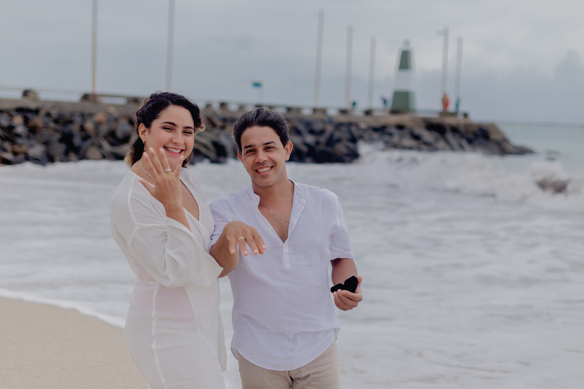 O som do mar, a brisa leve e a imensidão do horizonte criam o cenário perfeito para registrar a conexão entre vocês. Cada passo na areia, cada abraço e cada sorriso se transformam em memórias eternas diante desse visual incrível. 💍❤️